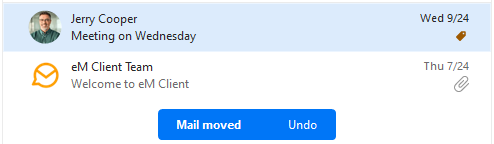 Accidentally moved a message to an incorrect folder? By popular demand, any Move action can now be undone via the pop-up notification in the message list or the Ctrl + Z keyboard shortcut.