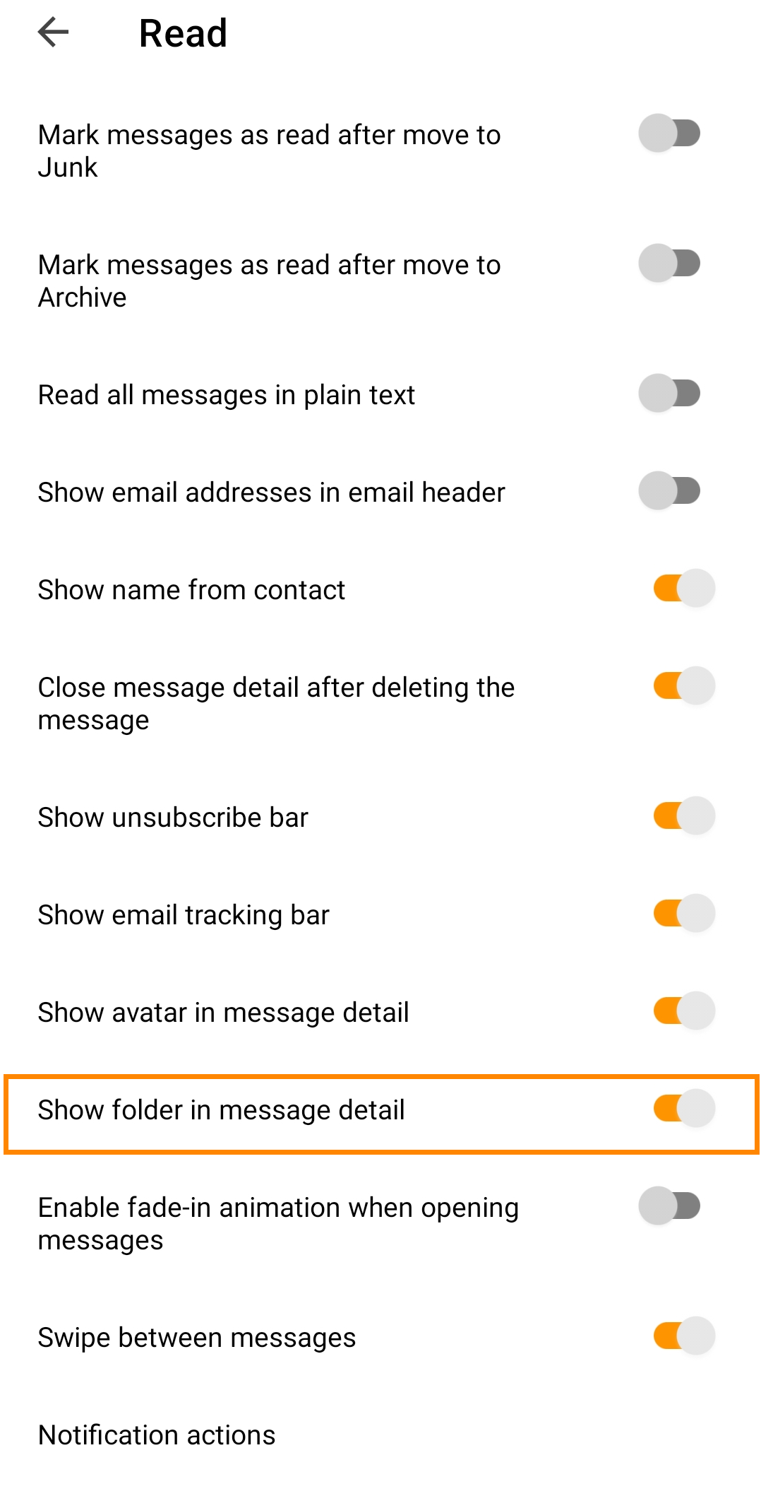 To enable or disable this feature, head to Settings > Mail > Read and look for the “Show folder in message detail” option: