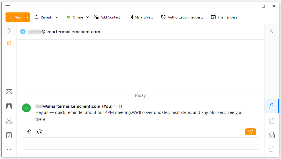 The eM Client app includes native support for SmarterMail Online meetings, which means that you