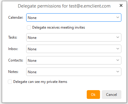 access to the delegated account by choosing to allow reading, creating, or modifying items, or any